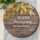 These Thanksgiving paper plates are decorated with watercolor leaves and berries in fall colors on a barn wood background.