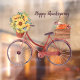 Rustic bicycle, sunflowers and pumpkin Happy Thanksgiving window cling.