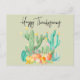 Happy Thanksgiving Cactus Watercolor Pumpkin Postcard