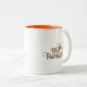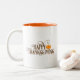 This ceramic coffee mug is shown in a festive happy thanksgiving pumpkin print.