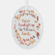 This beautiful autumn family Thanksgiving ornament features a pretty wreath of brown, orange, and red leaves around your personalized text. Customize this gift with your last name and year in lovely fall colours.
