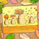 This cute, hand-drawn Thanksgiving card features four cartoon hedgehogs carrying everything you need for a good Thanks Giving dinner: a pumpkin, pie with custard cream, a delicious roast turkey, colorful autumn leaves, and of curse lots of gratitude and good cheer.