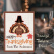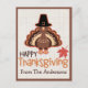 Send this fun and unique Thanksgiving pilgrim turkey postcard on faux linen that's wishing everyone a "Happy Thanksgiving" and personalize by adding your name or family name to the front.
