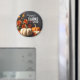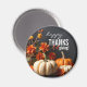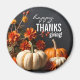 Happy Thanksgiving day round magnet with orange pumpkins and flowers on dark background