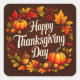 Happy Thanksgiving Day Rectangle Sticker pack with beautiful image of pumpkins, autumn leaves, acorns and berries on a dark brown background