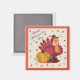 Cute picture of a turkey wearing a pilgrim's hat, with Fall leaves in the background, is featured on this square magnet for Thanksgiving! With message, "Happy Thanksgiving Day", this makes a great decoration or give as a gift for the Thanksgiving Holiday!