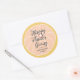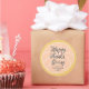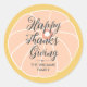 Happy Thanksgiving family name gift sticker or envelope seal features off-black elegant handwritten script calligraphy and simple modern typography with a stylish touch of orange pumpkin on a yellow background. Exclusively designed for you by Happy Dolphin Studio!