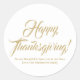 Happy Thanksgiving gold white custom script text Classic Round Sticker