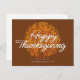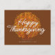 simple script lettering happy thanksgiving holiday card with fall tree leaves. The text and back colour can be personalized.