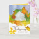 Happy Thanksgiving greetings in your new home featuring a house drawn with pencil and surrounded by colourful fall trees and leaves illustrated with watercolor. On the inside is a golden yellow colour and more leaves. You can edit the text to fit your needs. Nice card for special people celebrating a new home!