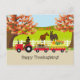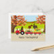Happy Thanksgiving Labradors and Tractor Postcard for Labrador Fans! Cute Labrador Family is marching with autumn harvested vegetables in the beautiful autumn view. Two horses are their audience. Created by Naomi Ochiai.