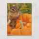 Happy Thanksgiving! A cute little chipmunk hangs on a basket of mini pumpkins - perfect for sending fun Thanksgiving greetings. Totally customizable for you to personalize as you please!