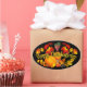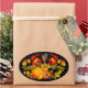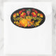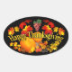 A unique, colourful Thanksgiving Day sticker, with pumpkins and other seasonal produce and fall leaves.