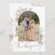 Thanksgiving photo card with beautiful fall foliage and arched photo. Front reads "Happy Thanksgiving". Add an additional picture on the back and your custom message. Send this gorgeous Thankgiving card to bless your loved ones this holiday season.