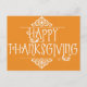 Happy Thanksgiving is written in a beautiful script on a dark orange background.