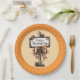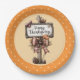 A Happy Thanksgiving Orange Paper Plate With Cute Wooden Sign And Big Bow And Orange Polka Dots