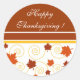 Autumn leaves and spiral pattern with 'Happy Thanksgiving !' greeting. Customizable text.
