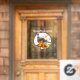This decorative window decal features a Turkey, harvested pumpkin and apple fruit, and a holiday greeting in white. Use this decorative holiday window cling on your business or home window or sliding glass door.