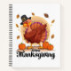 Happy Thanksgiving typography with a Turkey, autumn leaves and pumpkins, to celebrate thanksgiving and be thankful for everything.