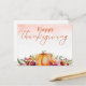 Happy Thanksgiving Watercolor Pumpkin and Flowers Holiday Postcard
