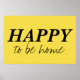 This happy to be home quote poster is bright yellow with bold black text for modern decor.