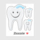 Sticker featuring a happy cartoon tooth with blue tooth paste. Set of three stickers