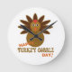 Happy Turkey Gobble Day Thanksgiving Round Clock