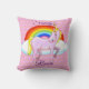 A happy unicorn makes up this fun pillow. Flip it over for a different look! Customizable so you can add your own text and change the background colour. This design is available on both round and square pillows. Makes a great gift!