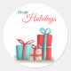 Baguettes étiquette de Vacances Joyeuses pour votre entreprise. Utilisez-les lorsque vous emballez vos commandes pour donner une touche festive supplémentaire. Le texte est personnalisable, vous pouvez le changer en Joyeux Noël ou un message personnel. Illustré et dessiné par Patricia Alvarez.