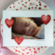 Custom Valentine card with photo, featuring watercolor hearts on back and front of the card. Clean, modern design.
