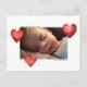 Custom Valentine postcard with photo, featuring watercolor hearts on back and front of the card. Clean, modern design.