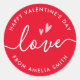 Happy Valentine's Day elegant script and name red Classic Round Sticker