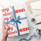 This wrapping paper features the words “Happy Valentine's Day” in a unique print font with red letters within a circular styled design plus the word Love on a banner to the left in this Valentines Day theme. All wrapping papers are offered in four types of premium paper and five different sizes. Has a softer surface and dull finish with full colour edge to edge printing on 60lb, text weight matte paper. Great for all types of gift wrapping for anything, from birthdays to graduation, weddings to anniversaries.