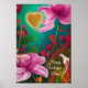 Happy Valentines Day -Pink Flowers and Hearts Poster