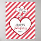 Happy Valentine's Day Red Hearts Chalk Stripes Poster