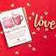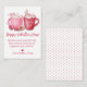 elegant happy valentines day,red pink watercolor two mugs with hearts and holiday wishes.