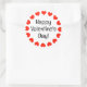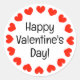 Happy Valentine's Day stickers with red hearts. Custom colour stickers with personalized text. Great for gifts, favours and presents. Round design with circle of hearts.