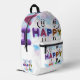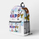 The image features the word "HAPPY" spelled out in colourful, furry letters, each with its own vibrant hue. The "H" is purple, the "A" is pink, the "P" is blue, the second "P" is orange, and the "Y" is yellow. Some of the letters have cartoon faces and limbs, adding a playful, animated touch. The "H" makes a hand gesture, while one of the "P"s waves cheerfully. The "A" and "Y" have legs with shoes, enhancing their lively appearance. The background consists of a pastel-coloured sky with fluffy clouds and twinkling stars, creating a cheerful and whimsical atmosphere. The overall composition exudes joy and positivity, making it perfect for designs that evoke happiness and fun!
