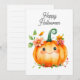 Happy Watercolor Pumpkin in Flowers for Halloween. Matching items available in the collection.