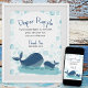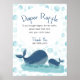 Happy whale baby shower sign for your diaper raffle game to place at the diaper and raffle ticket drop off point. The design features a mommy and baby whale swimming in the sea with a frame of ocean bubbles. It is lettered in whimsical typography with editable game instructions and a colour palette in shades of blue, aqua and ocean green. If you would like matching products, please browse my Happy Whale collection or message me to add the design templates you need.