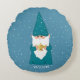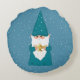 Happy Wizard Gnome & Magic Lamp on Sapphire Blue Round Pillow