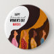 Celebrate unity and sisterhood with this original artist-painted button for International Women's Day. Featuring a diverse group of women in profile, this design showcases long, wavy hair flowing in vibrant sunset tones and elegant colorful floral dresses. A boutique wearable art piece that symbolizes the strength and beauty of women standing together.