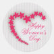 Gentle red colour flowers that make heart,with message "happy women's day' inside of it.