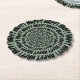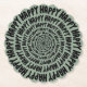 Happy in a fun handwritten font goes around in a spiral of concentric circles on a green lemongrass background. A fun tableware design for your next Happy Hour or Happy Birthday celebration.