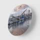 San Pedro California is the subject in this beautiful wall clock. Great gift for boat-enthusiasts & beach-lovers alike. Nice Accent for any room in the house or office, especially the den or the bathroom. Misty grey-blue water against a peachy sun-set sky mirrors a line of docked boats. Get one for yourself or that special someone else.