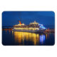 Dawn is on the way, and a cruise ship, ablaze with lights creating reflections on the surface of the water, is already berthed at Port Canaveral and ready for turn around day. Soon, hundreds of passengers will head home, while others await the beginning of their voyage.