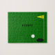 This jigsaw puzzle makes a great gift for the golfer during the off season. He or she will have some time to finish this hard puzzle which is a green with a flag and a hole with the name of the golfer. Copyright Kathy Henis