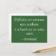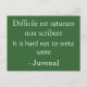 A turquoise green postcard with a latin phrase and the English translation underneath. "It is hard not to write satire", by Juvenal, who was a famous Roman writer.