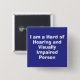The hard of hearing and visually impaired person blue button is a button for those with hearing and vision problems. It is simply designed with yellow writing on a blue background. It is a suitable gift for people with hearing and visual impairments.