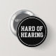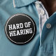 This sporty button features the slogan 'Hard of Hearing' in a bold varsity-style serif font. White text stands out on a black background. You can customise the text as needed. ••• For more cool medical badges, visit my store Zazzle.com/Elder_Vitality ••• For custom orders, message me on Zazzle
